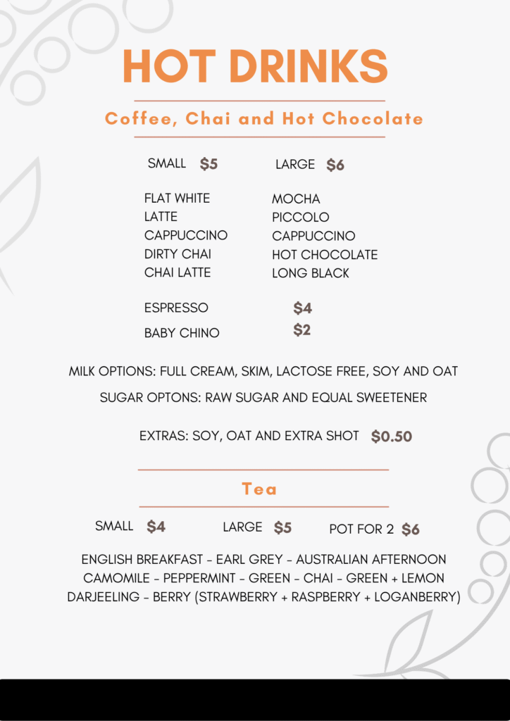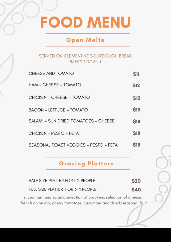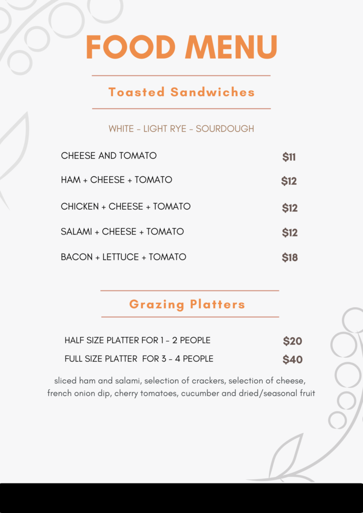 Please note: all food consumed on premises must be purchased from our cafe unless prior approval has been granted.