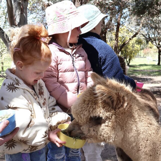 As you step into the paddock, you’ll find yourself encircled by a joyful herd of alpacas and llamas, all eagerly anticipating the delicious treats you’ve brought to fill their bellies!